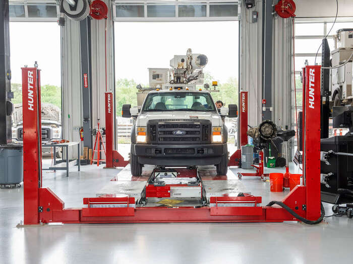 Hunter's Heavy-Duty Four-Post semi and truck lift features a 35,000-lb. lifting capacity, 300-in. alignment wheelbase capability, galvanized runways and turnplate pockets and slipplates for servicing standard vehicles.