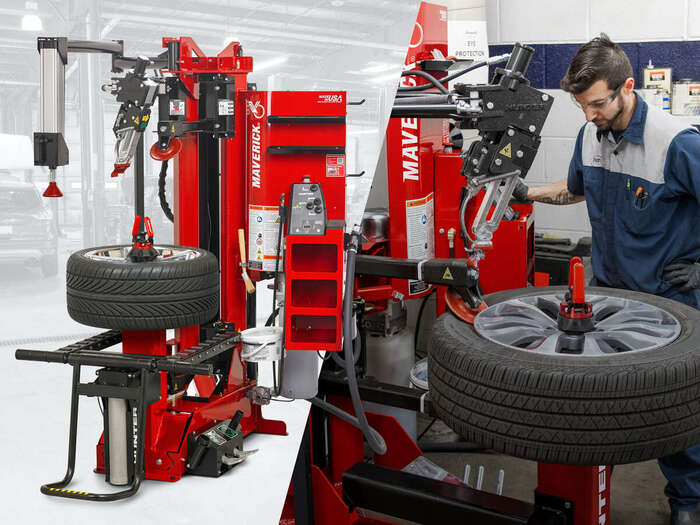 The Maverick® technician-focused tire changing machine designed and built in the USA provides fully variable hydraulic control and unique features that allow a safe and easy tire changing process.